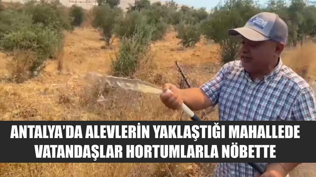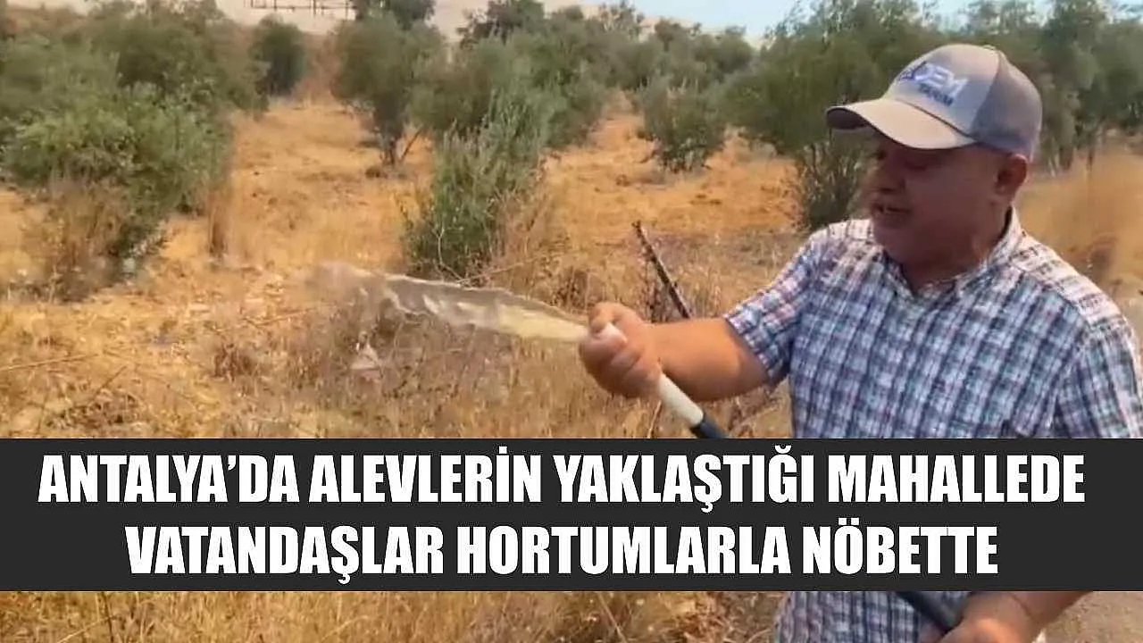 Antalya'da alevlerin yaklaştığı mahallede vatandaşlar hortumlarla nöbette