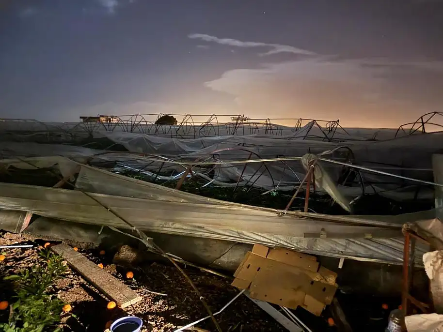 Mavikent Mahallesi Muhtarı Adem Karataç, "Fırtına ve sağanak yağışla birlikte hortum oluştu. Bir anda gelip geçen hortum geçtiği yerlerde zarara neden oldu. Seralarımız büyük zarar gördü. Sabah olunca her şeyi daha net göreceğiz" dedi.