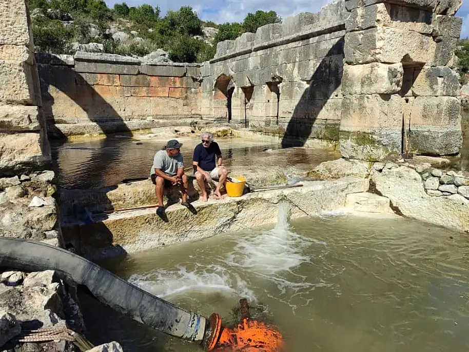 Antalya'nın Demre ilçesindeki Myra Antik Kenti sınırlarında yer alan ve milattan sonra 2. yüzyılda Roma döneminde inşa edildiği belirlenen termal yapı, yürütülen kazı ve koruma çalışmalarıyla ilk günkü işlevine kavuşturulmak üzere gün yüzüne çıkarılıyor. Myra ile antik liman kenti Andriake arasında, şifalı su kaynağı üzerine kurulu yapıdaki kazılarda ekipler yoğun su ve çamurla mücadele ederken, zaman zaman 16,5 derece sıcaklıktaki termal suda temizlenerek çalışmaya devam ediyor. Myra Antik Kenti Kazı Başkanı Prof. Dr. Nevzat Çevik, 'Bu yapının benzeri bölgede yok, Roma İmparatorluk Dönemi mimarlığı açısından orijinal bir keşfin içindeyiz' dedi.