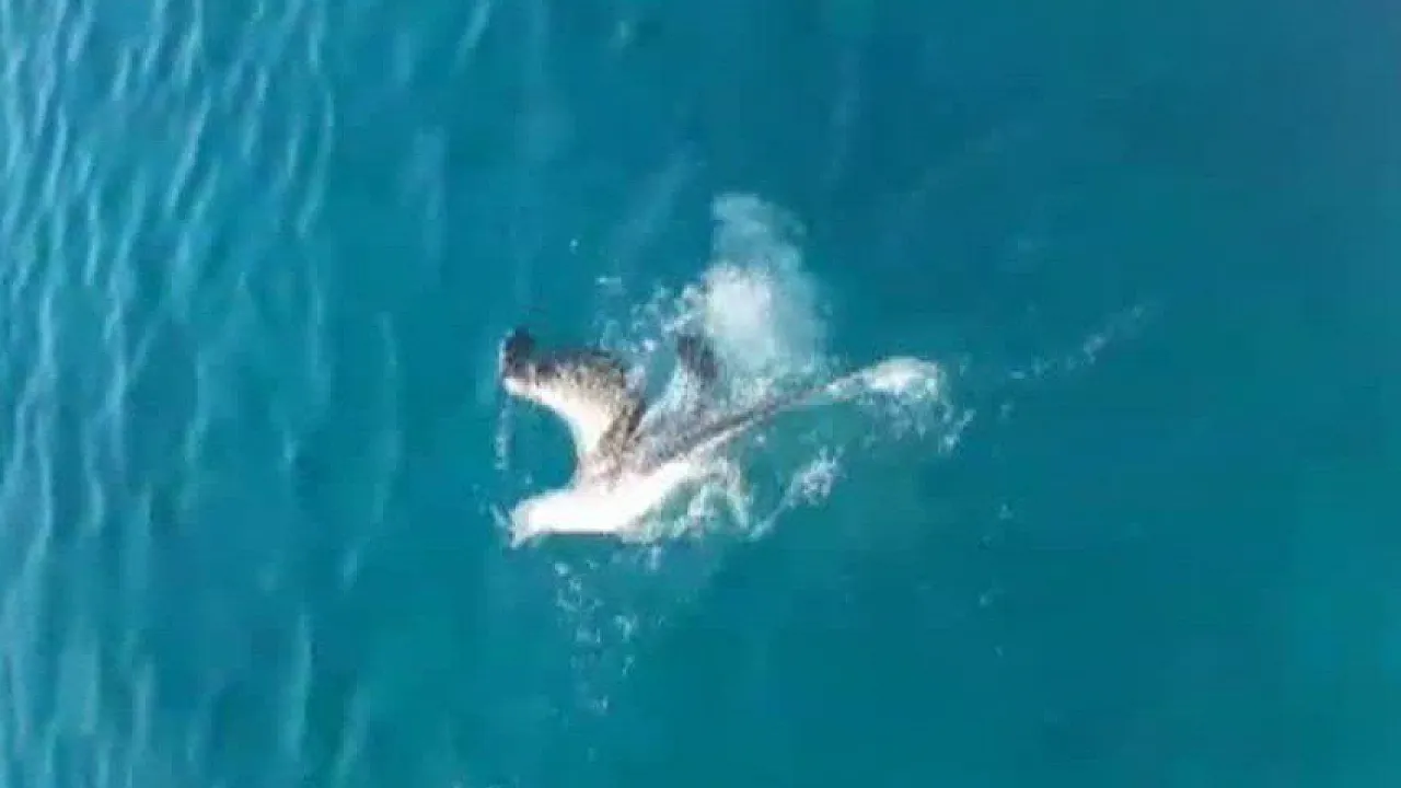 Bodrum'da balık avlamak için Gümüşlük sahilinden denize açılan amatör balıkçılar, deniz ortasında gördükleri manzara karşısında şok oldu. Denize dalarak balık avlayan martı ağlara takılınca av oluyordu. Can çekişen martının imdadına balıkçılar yetişti.