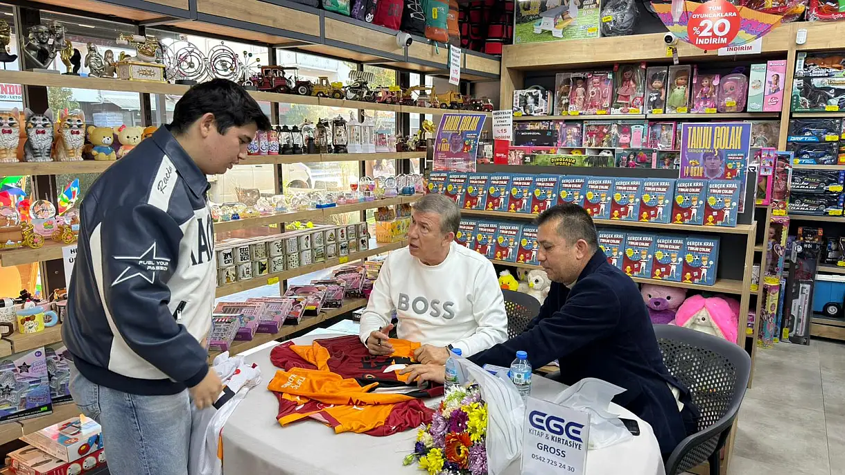 Avrupa Gol Kralı Tanju Çolak, çocuklara yönelik kaleme aldığı 'Gerçek Kral Tanju Çolak' adlı kitabının lansmanı kapsamında Fethiye'de okulları ziyaret etti. Ege Kırtasiye Gross'ta düzenlenen etkinlikte çocuklar ve ailelerle bir araya gelen Çolak, gördüğü ilgiden duyduğu memnuniyeti dile getirdi.