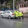 Aydın'ın Söke ilçesinde, yağışlı havada arızalanan bir aracın sürücüsüne polis ekipleri yardım etti. Polisler, arızalanan aracı güvenli bir alana itip trafik yoğunluğunun oluşmasını engelledi.