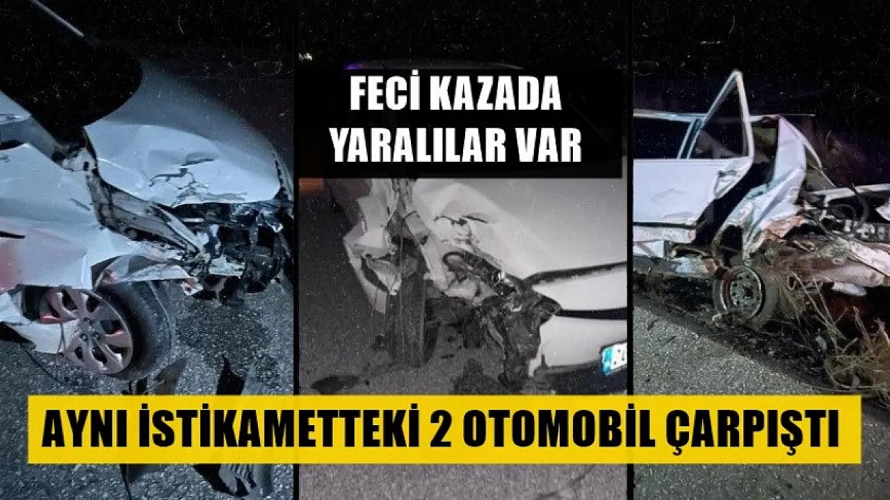 Aynı istikametteki 2 otomobil çarpıştı, feci kazada yaralılar var