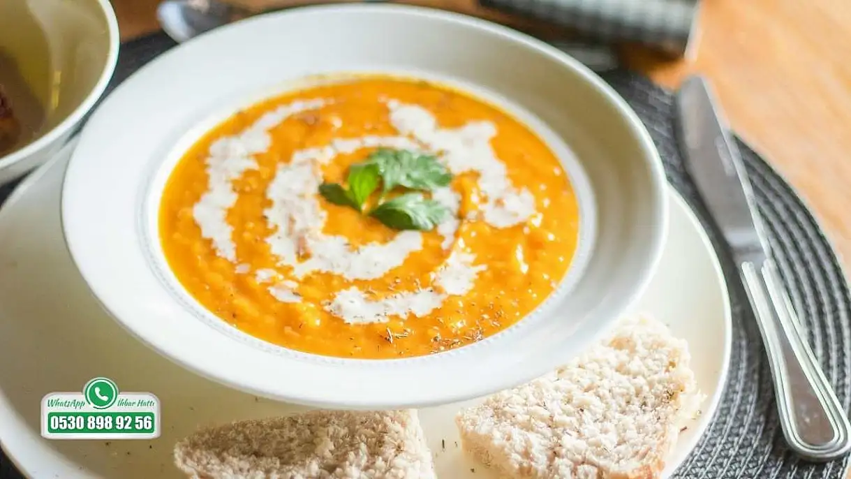 “Balkabağı, havuç ve patatesi soyup doğrayın. Zeytinyağını bir tencerede ısıtın, doğranmış soğan ve sarımsakları ekleyip kavurun. Ardından doğranmış sebzeleri, zencefili ve zerdeçalı ekleyin, birkaç dakika kavurun. Suyu ekleyip sebzeler yumuşayana kadar pişirin. Çorbayı blenderdan geçirerek pürüzsüz hale getirin. Tuz ve karabiber ile tatlandırıp sıcak servis yapın.”