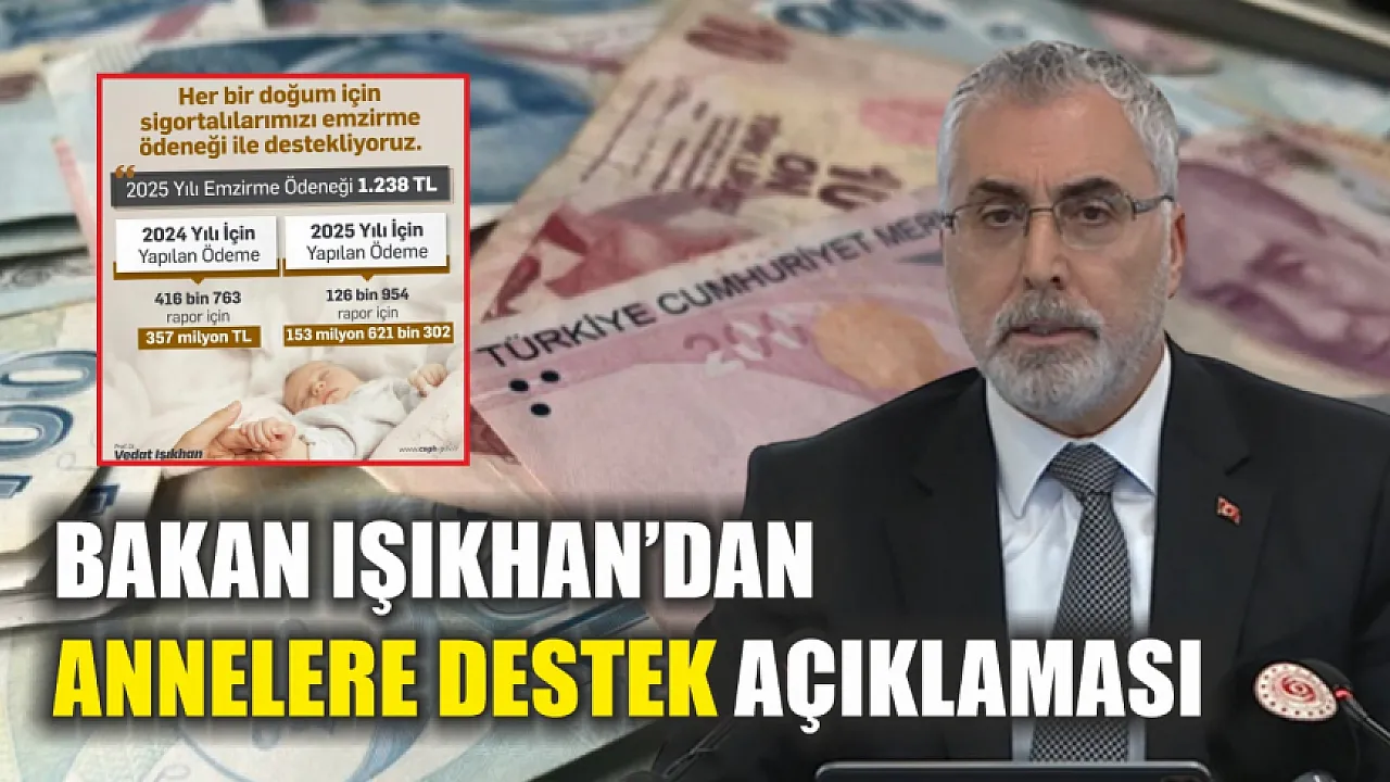 Çalışma ve Sosyal Güvenlik Bakanı Vedat Işıkhan, 2024 yılında annelere yönelik emzirme ödeneğinin 357 milyon TL'ye ulaştığını duyurdu. Destekler artarak devam ediyor.