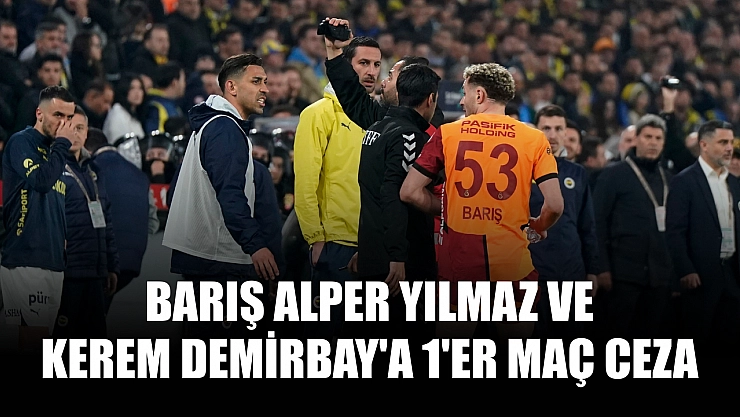 Türkiye Futbol Federasyonu (TFF) Profesyonel Futbol Disiplin Kurulu, Galatasaraylı futbolcular Barış Alper Yılmaz ve Kerem Demirbay'a, Fenerbahçe ile oynanan Türkiye Kupası maçında 'rakip takım mensubuna yönelik sportmenliğe aykırı hareketi' nedeniyle 1'er maç ceza verdi.