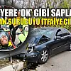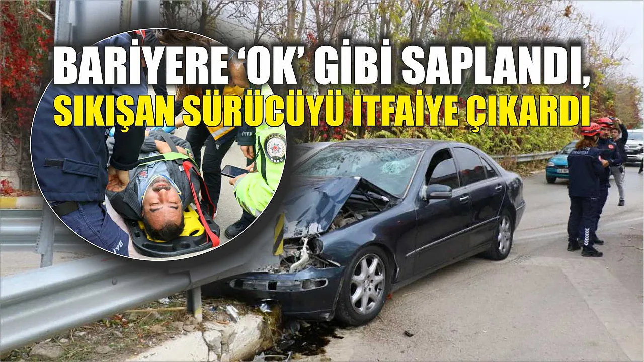 Meydana gelen trafik kazasında iki yol ayrımındaki bariyerlere ok gibi saplanan araçta sıkışan sürücü, itfaiye ekipleri tarafından çıkarıldı.