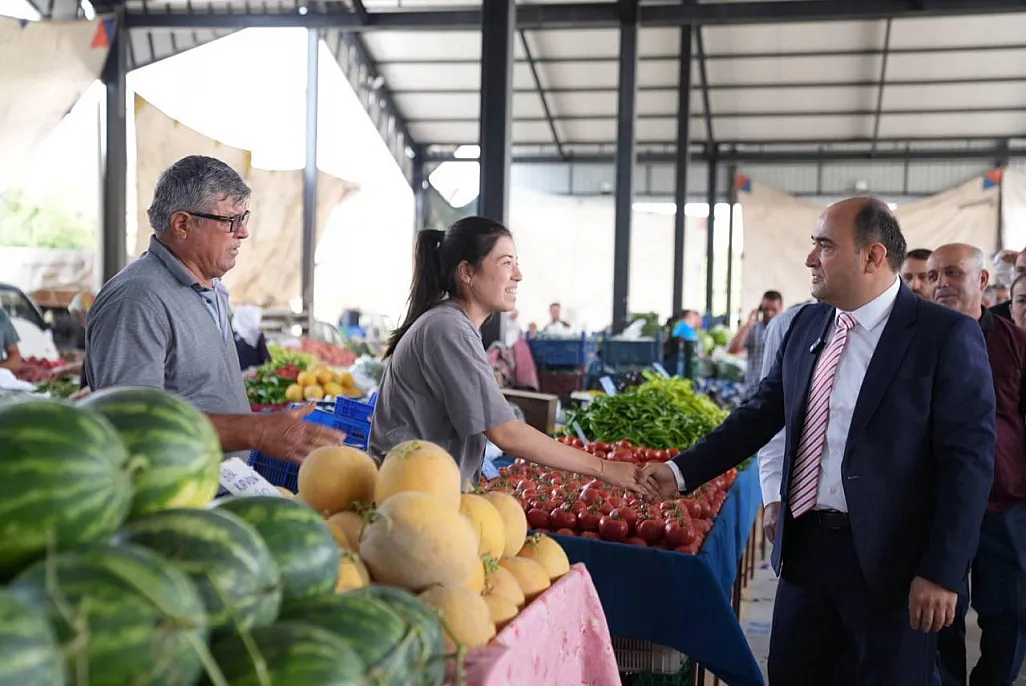 Seydikemer Belediye Başkanı Önder Akdenizli, ilçeye kazandırılan yeni pazar yerinde tezgâh açan esnafa yönelik kapsamlı bir ziyaret gerçekleştirdi. Ziyarette Pazar esnafına pazarcı önlüğü hediye eden başkan Akdenizli, alış verişe gelen vatandaşlara da çorba ikramında bulundu.