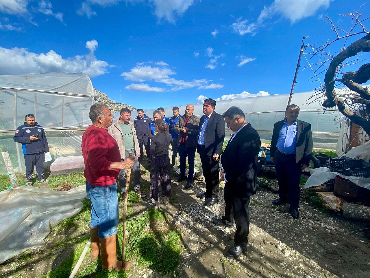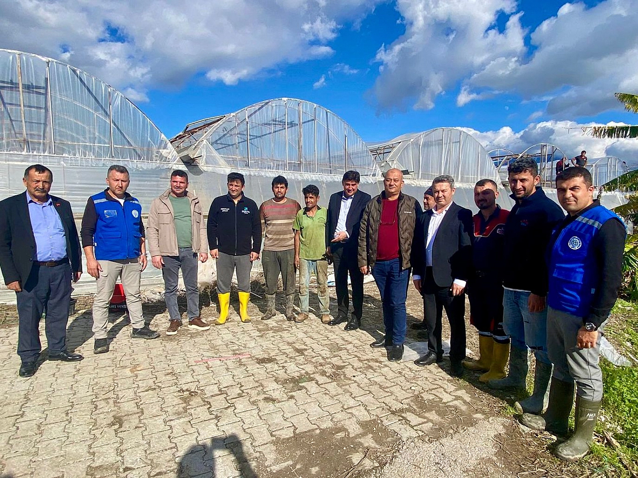 Afetin etkili olduğu tarımsal alanlar ve seralarda çiftçilerle bir araya gelen Başkan Karaca, üreticilere geçmiş olsun dileklerini iletti.