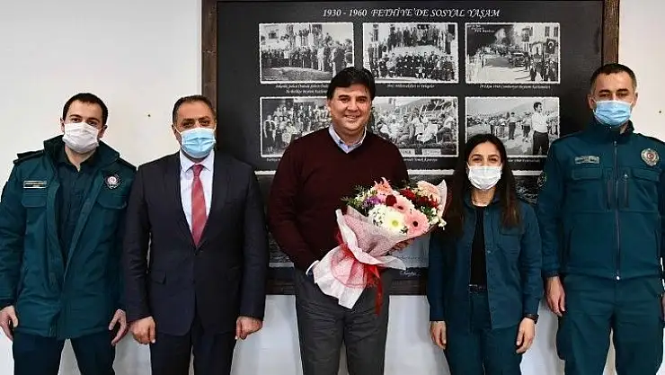 26 Ocak Dünya Gümrük Günü olması nedeniyle, Fethiye Gümrük Müdürü Bülent Kınalı ve Gümrük Müdürlüğü çalışanları Fethiye Belediye Başkanı Alim Karaca'yı makamında ziyaret etti.