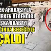 Bebek arabasıyla gezinirken beğendiği başka arabayı kucağında bebeğiyle çaldı