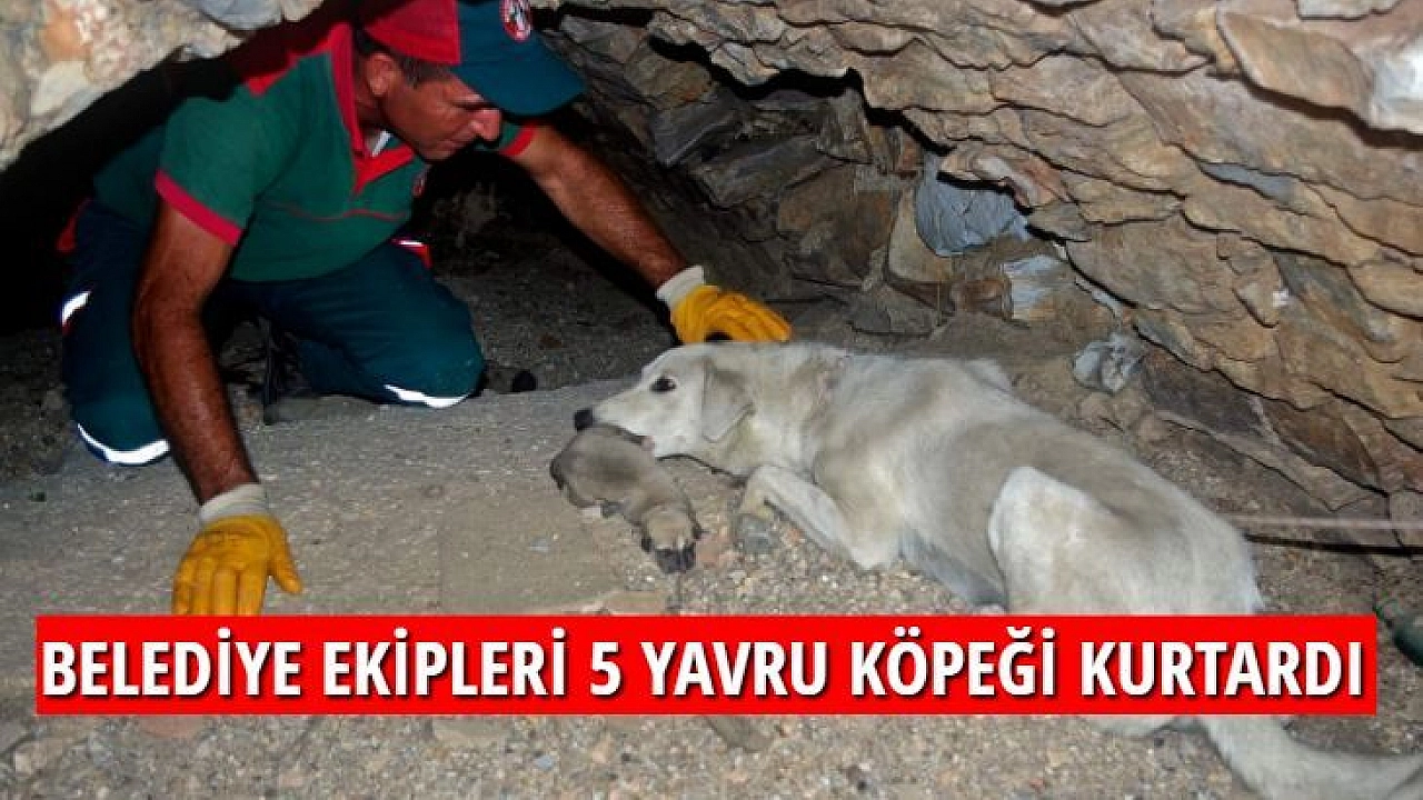BELEDİYE EKİPLERİ 5 YAVRU KÖPEĞİ KURTARDI