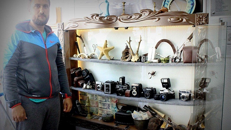 Mesleğe başladığı günden bugüne antika eşyalara merak saran Tiriç, bulduğu tarihi eşyaları satın alarak iş yerini adeta müzeye çevirdi.