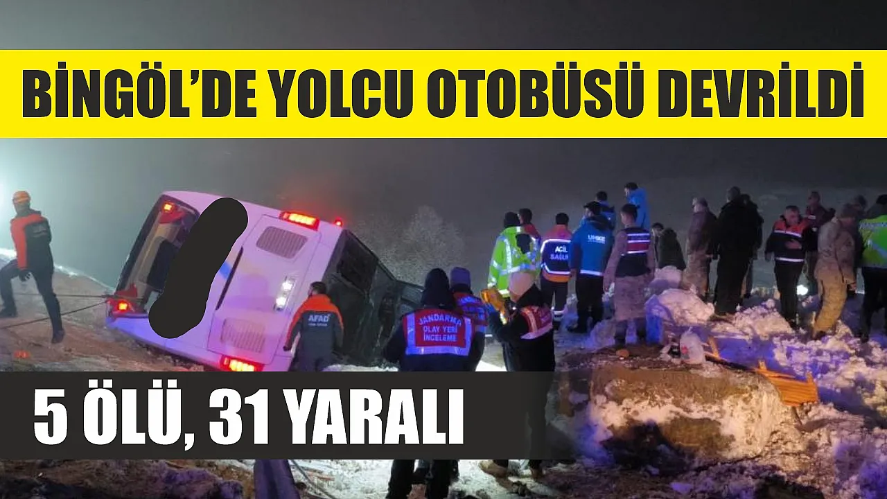 Bingöl'de yoğun kar yağışı nedeniyle kontrolden çıkan yolcu otobüsü şarampole devrildi. Kazada hayatını kaybedenlerin sayısı 5'e yükselirken, 31 kişi yaralandı.