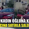 Bir kadın oğluna kızarak eline aldığı satırla aracına saldırdı. O anlar cep telefonu kamerasıyla kaydedildi.