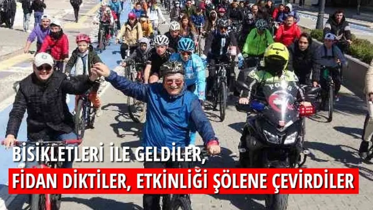Bisikletleri ile geldiler, fidan diktiler, etkinliği şölene çevirdiler