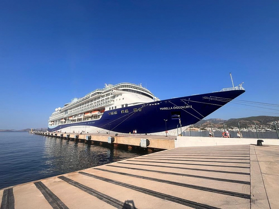 Muğla'nın Bodrum ilçesine gelen 'Marella Discovery 2' adlı yolcu gemisi, 1809 yolcu getirdi.