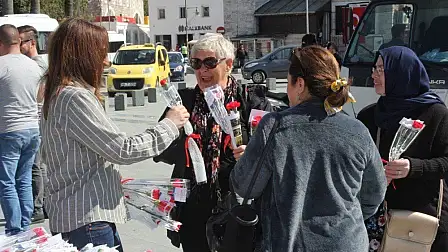 Bodrum Belediye Başkanı Mehmet Kocadon’un "Kadın; Aklın, Cesaretin, Sevginin ve Estetiğin Sembolüdür Dünya Emekçi Kadınlar Gününüzü Kutlar, En Derin Saygılarımı Sunarım" sözleri yer alan kırmızı karanfiller Bodrum Belediyesi Kültür ve Sosyal İşler Müdürlüğü personeli tarafından kadınlara dağıtıldı.
