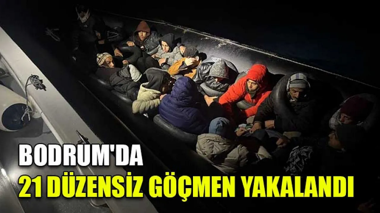 Muğla'nın Bodrum ilçesinde 9'u çocuk 21 düzensiz göçmen yakalandı.