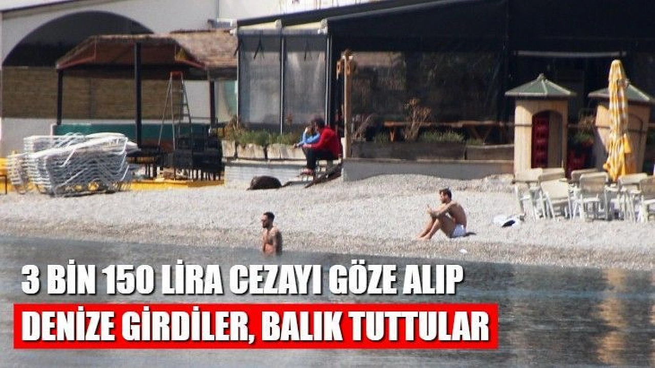 Muğla'nın Bodrum ilçesinde sokağa çıkma kısıtlamasında 3 bin 150 lira cezayı göze alan vatandaşlar denize girip balık tuttu. Özellikle sakin koylara giden vatandaşlar sokağa çıkma kısıtlamasına aldırış etmedi.