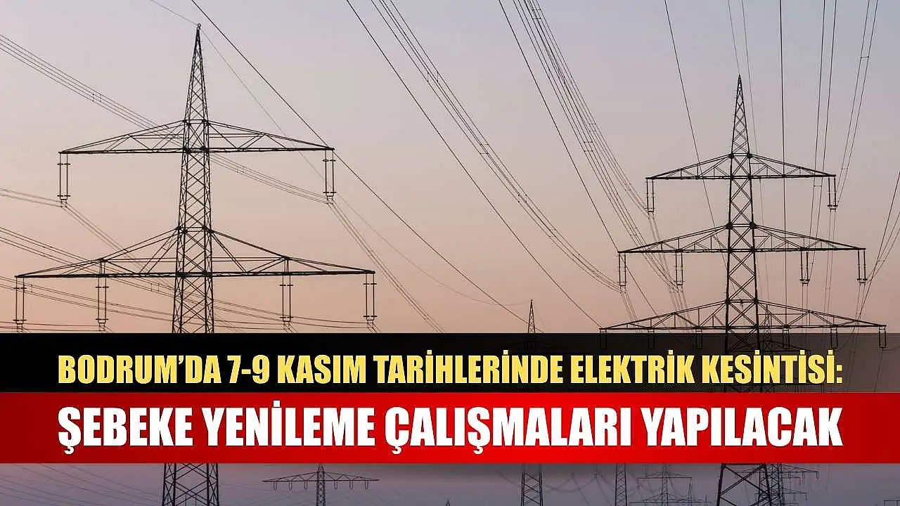 - Bodrum'da 7-9 Kasım Tarihlerinde Elektrik Kesintisi: Şebeke Yenileme Çalışmaları Yapılacak