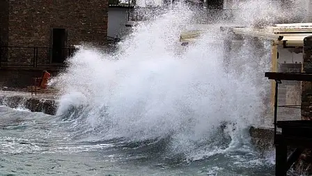 Muğla'nın Bodrum ilçesinde akşam saatlerinde başlayan fırtınanın hızı saatte 70 kilometre hıza ulaştı. Fırtına nedeniyle dev dalgalar oluşurken, feribot seferleri iptal edildi, kuru yük gemileri limanlara sığındı.