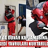 Bodrum'da duvar kaplamasına sıkışan kedi yavruları kurtarıldı