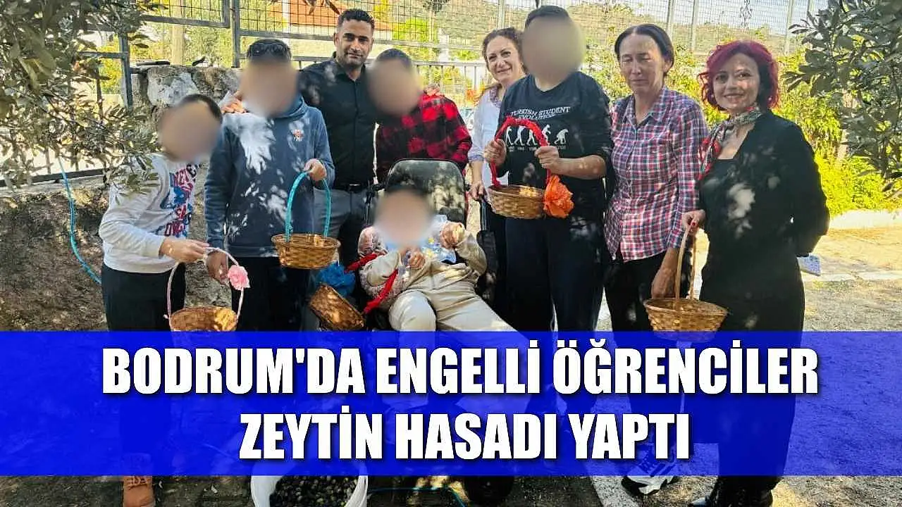Muğla'nın Bodrum ilçesinde engelli öğrenciler zeytin hasadı yaptı.