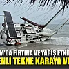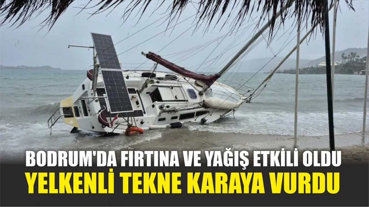 Muğla'nın Bodrum ilçesinde fırtına ve sağanak yağış etkili olurken, fırtına nedeniyle yelkenli tekne karaya vurdu.