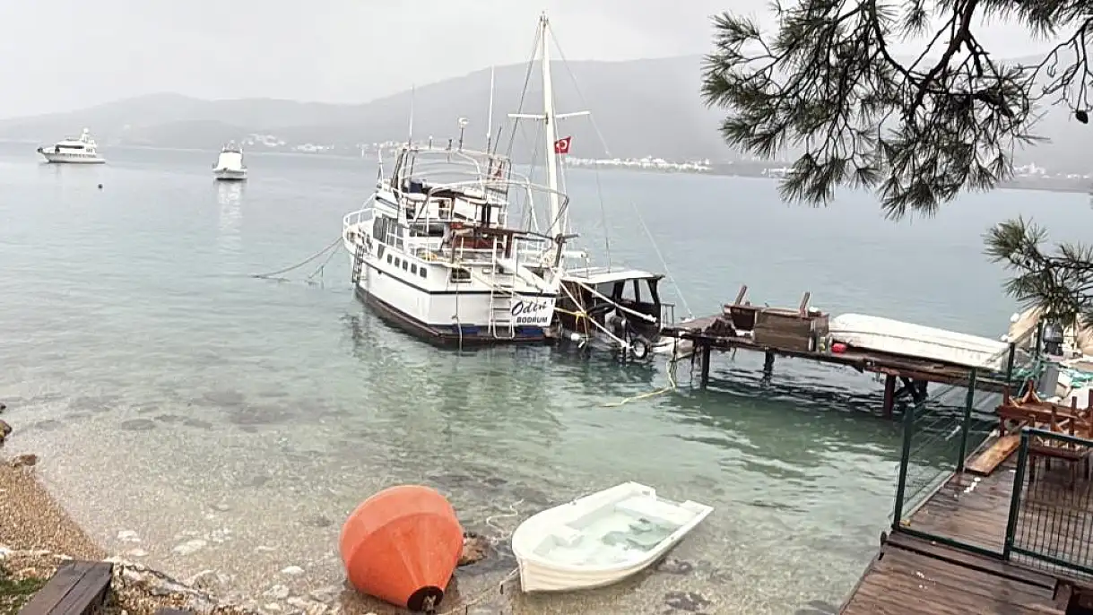 Muğla'nın Bodrum ilçesinde etkili olan fırtına nedeniyle bazı tekneler battı, kimileri de karaya sürüklendi.
