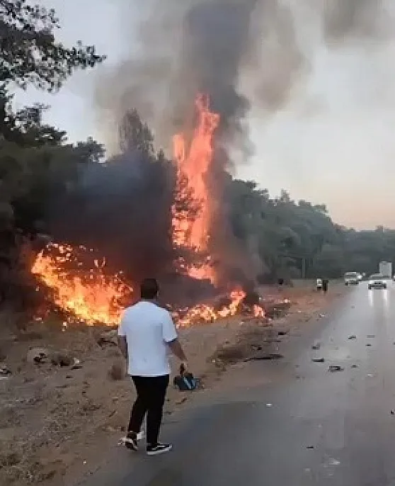 Bodrum'da motosikletle çarpışan araçta yangın çıktı: 1 ölü, 2 yaralı