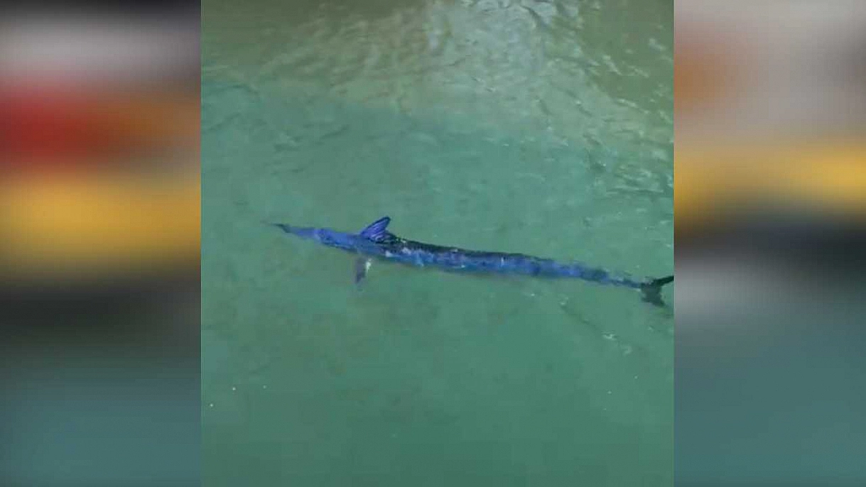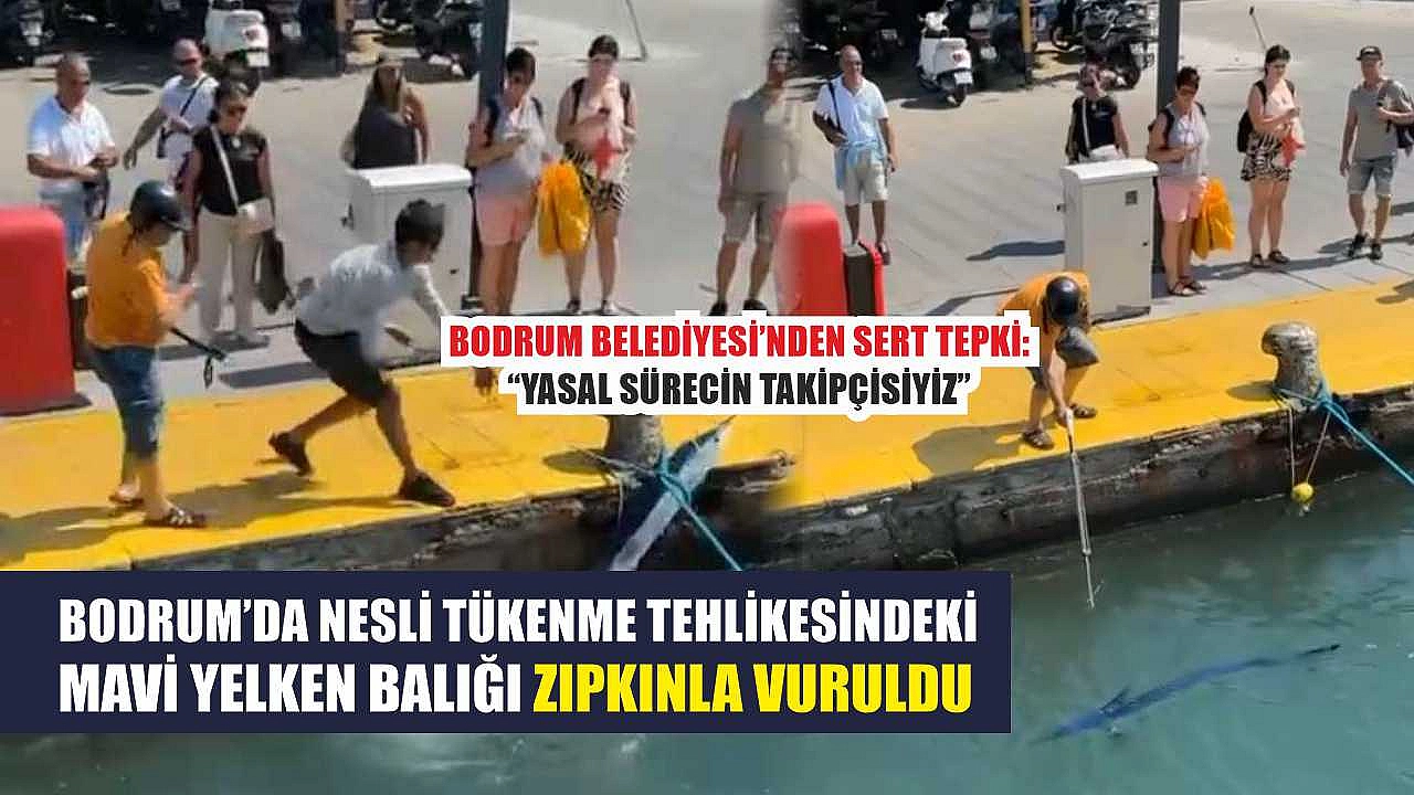Muğla'nın Bodrum ilçesinde nesli tükenme tehlikesiyle karşı karşıya olan mavi yelken balığı zıpkınla vuruldu. Vatandaşlar balığın vurumasına tepki gösterdi.