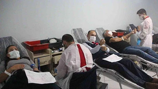 Muğla'nın Bodrum ilçesinde yeni açılan kan bağışı merkezinde düzenlenen kan bağışı etkinliğine katılan öğretmenler, kan bağışında bulundu.