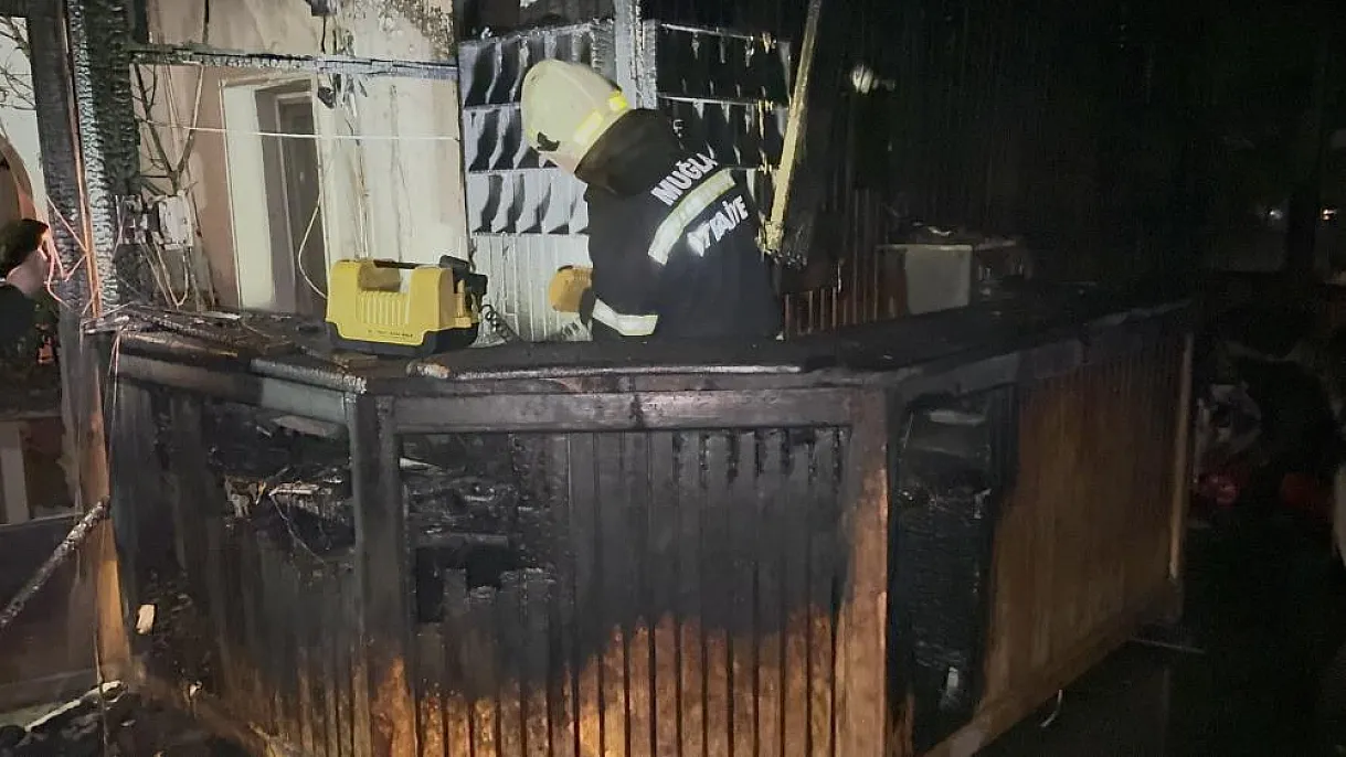 Muğla'nın Bodrum ilçesinde çıkan yangında bir otelin resepsiyonu alevlere teslim oldu.