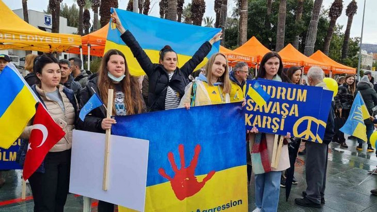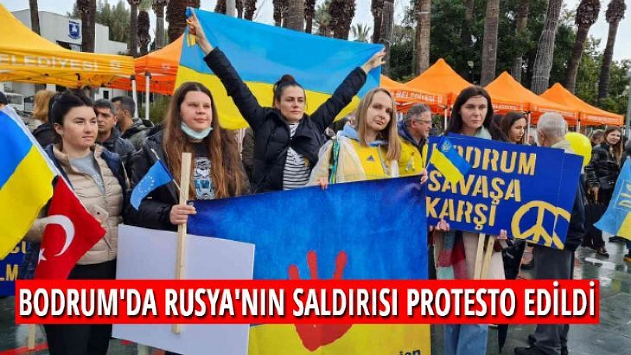 Bodrum Belediye Meydanı’nda bir araya gelen ve aralarında Bodrum’da yaşayan Ukraynalıların da olduğu yüzlerce kişi, Türkçe ve İngilizce olarak “Bodrum Savaşa Karşı”, “Çocuklar Ölmesin”, “Putin’i Durdur, Savaşı Durdur”, “Savaşa Hayır” yazılı dövizler taşıdı. Kimi katılımcıların da Ukrayna bayrakları taşıdığı görüldü.