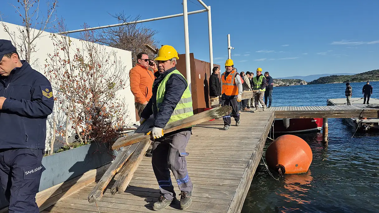 Sabah saatlerinde Bodrum Kaymakamlığı koordinesinde Bodrum Belediyesi, Milli Emlak Müdürlüğü, Bodrum Bölge Liman Başkanlığı, Jandarma ve Sahil Güvenlik ekipleri bölgeye geldi. İskelenin tahtalarını söken ekipler, iş makineleri ile ayaklarını da söktü. Teknelerle çekilen yüzer iskelelerin yediemine götürüleceği kaydedildi.