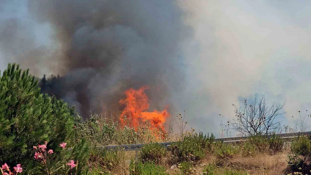 Milas-Bodrum karayolu havalimanı kavşağında saat 14.40 sıralarında yol kenarındaki otların tutuşması ile yangın başladı.
