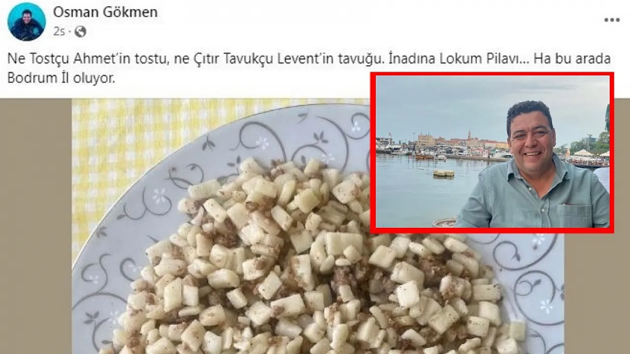 Lokum pilavı fotoğrafı paylaşan Gökmen, “Ne Tostçu Ahmet’in tostu, ne Çıtır Tavukçu Levent’in tavuğu. İnadına Lokum Pilavı… Ha bu arada Bodrum İl oluyor” ifadelerini kullandı.