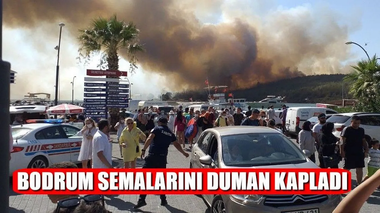 Muğla'nın Bodrum ilçesinde meydana gelen orman yangını devam ediyor. Ekiplerin söndürme çalışmalarına rağmen hızla büyüyen yangında Bodrum semaları siyaha büründü.