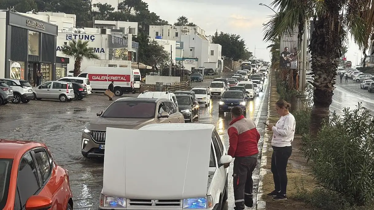 Muğla'nın Bodrum ilçesinde aniden bastıran sağanak yağış, sokak ve caddeleri göle çevirdi. Kısa sürede şiddetini artıran yağmur sürücüler ve vatandaşlara zor anlar yaşattı.