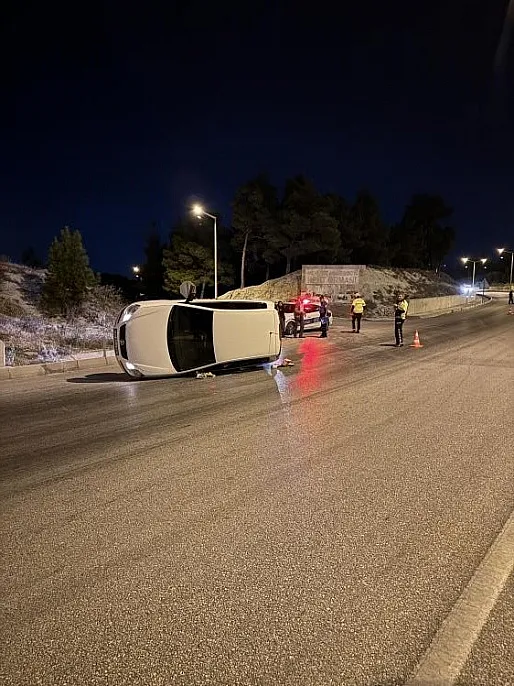 Burdur- Isparta karayolu'nda virajdan dönerken yol kenarında bulunan bordür taşının üzerine çıkan otomobil devrilirken sürücü aracı bırakıp olay yerini terk etti.