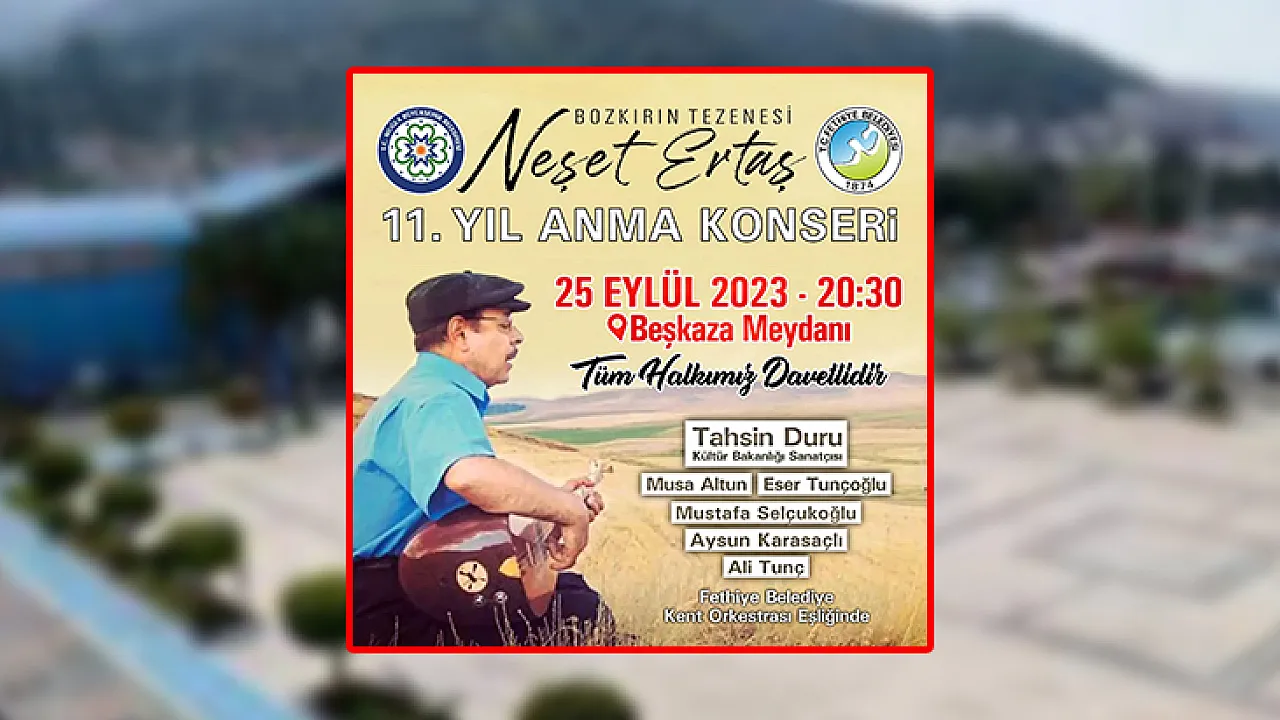 Fethiye Belediyesi’nin her yıl gerçekleştirdiği Neşet Ertaş Anma Konseri bu yıl Beşkaza Meydanında yapılacak.