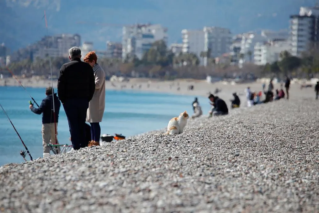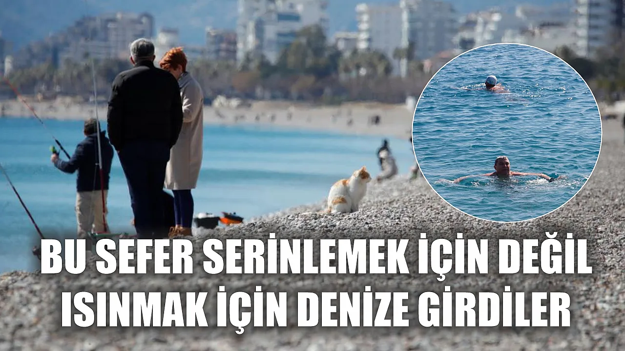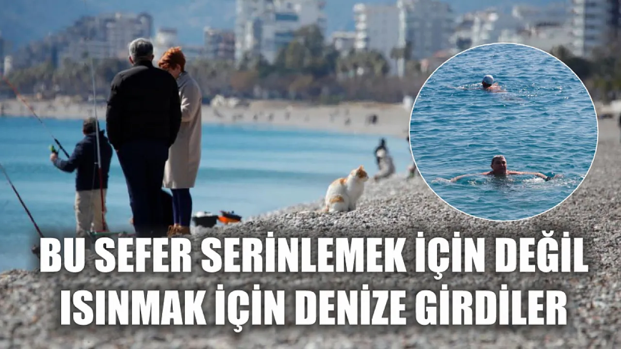 Son iki gündür soğuk hava etkisindeki Antalya'da bazı vatandaşlar ve yabancı turistler ısınmak için sıcaklığı 18 derece olan denize girdi.