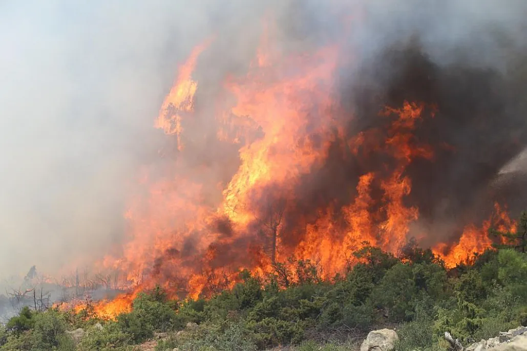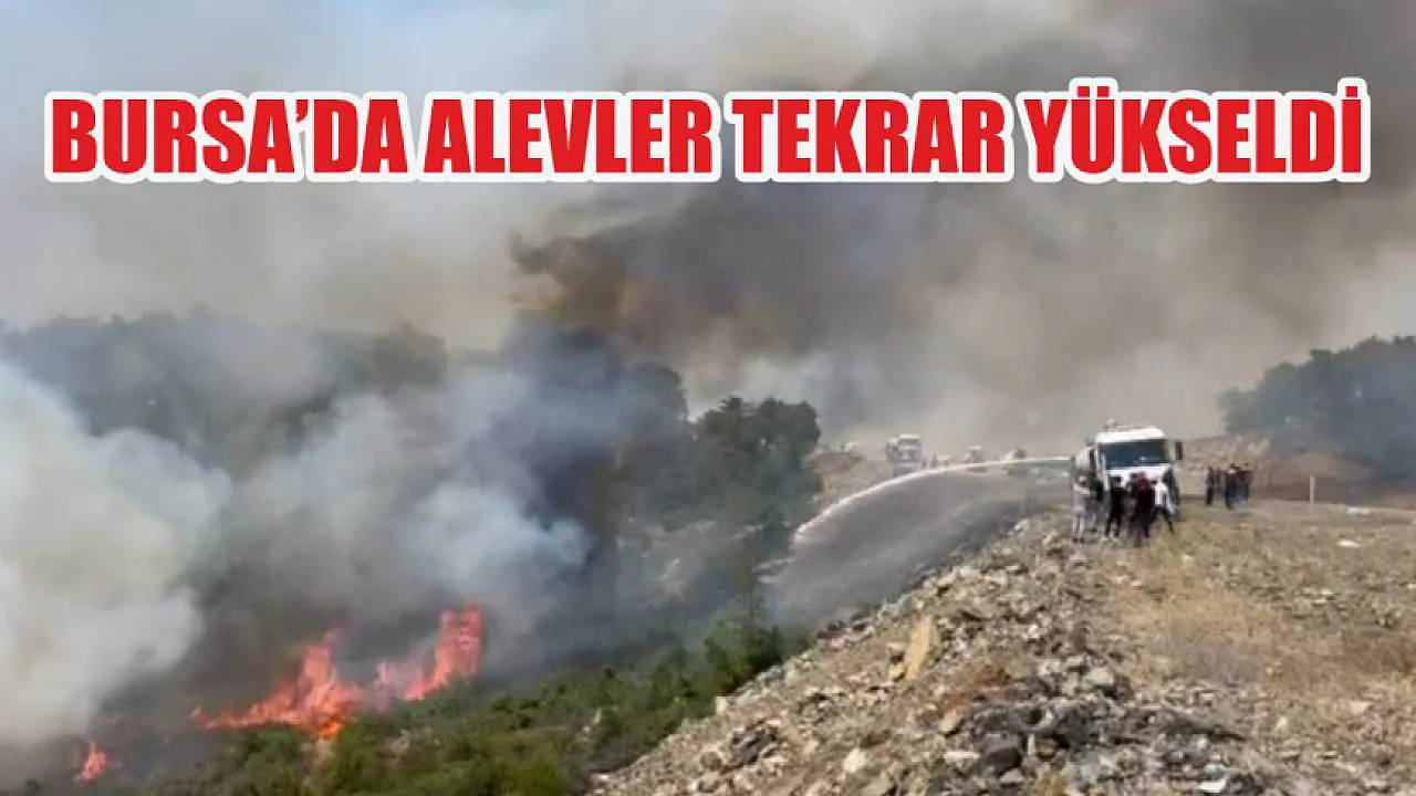 Bursa'nın Harmancık ilçesi Meyran Rampası mevkisinde orman yangını yeniden etkili oldu. Rüzgarın da etkisiyle büyüyen yangına kara ve hava ekipleriyle müdahale ediliyor.