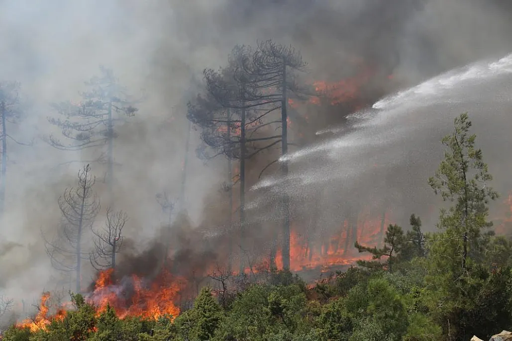 Bursa'nın Harmancık ilçesi Meyran Rampası mevkisinde orman yangını yeniden etkili oldu. Rüzgarın da etkisiyle büyüyen yangına kara ve hava ekipleriyle müdahale ediliyor.