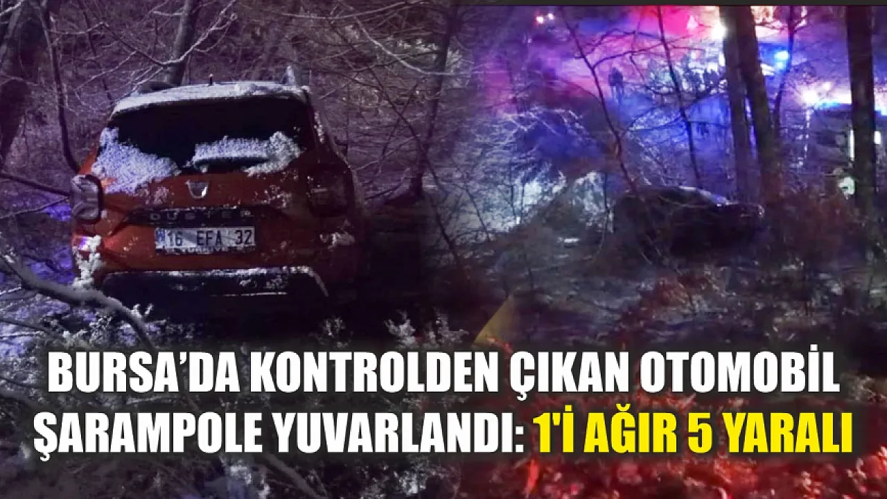 Bursa'da kontrolden çıkan otomobil şarampole yuvarlandı: 1'i ağır 5 yaralı