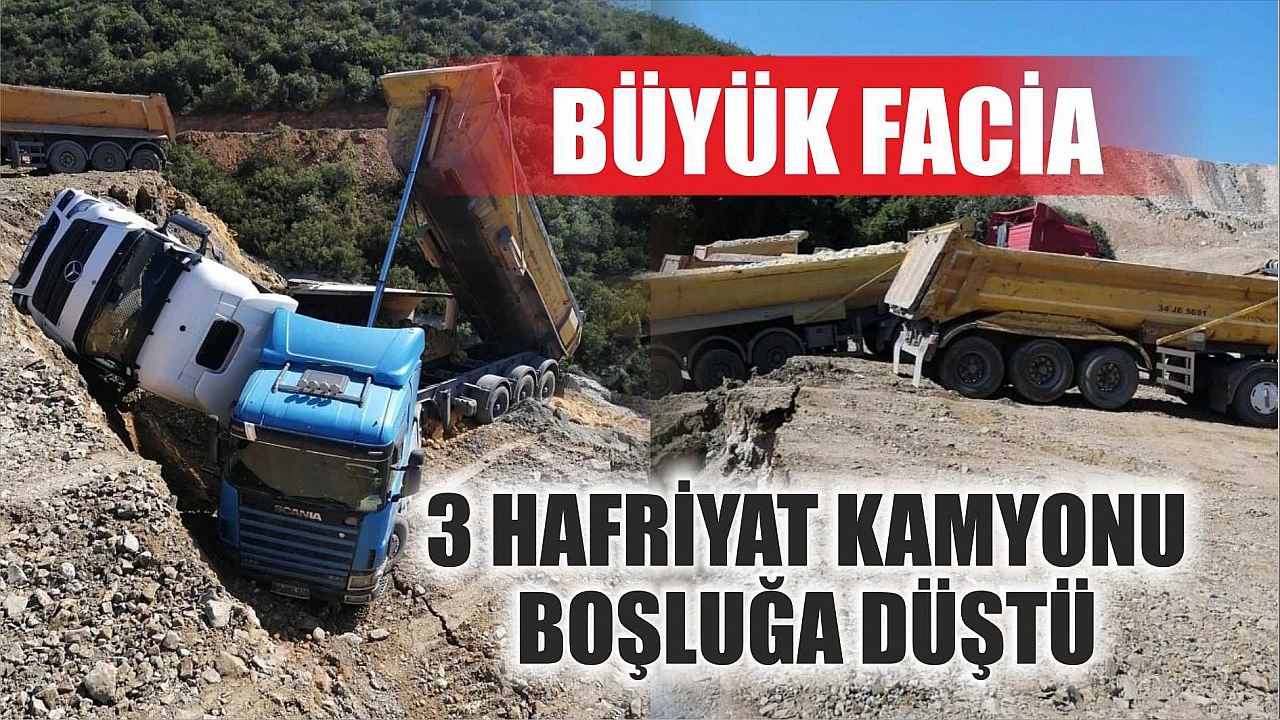 Büyük facia: 3 hafriyat kamyonu boşluğa düştü