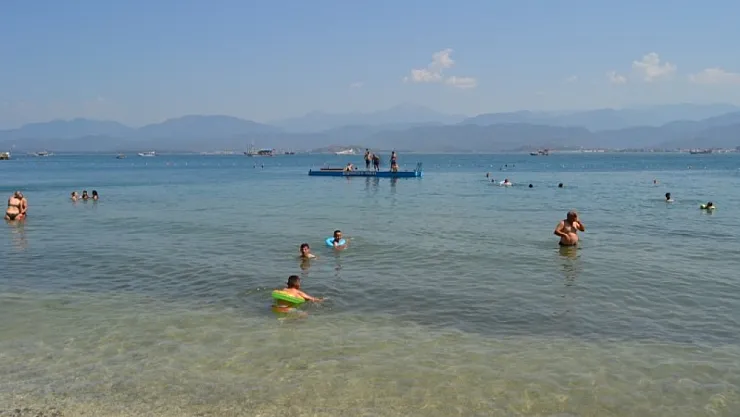 Uzun sahil şeridi ve mavi bayraklı plajları ile sıcak yaz günlerine denk gelen bayram tatilinde binlerce kişi Fethiye’nin plajlarına akın etti.