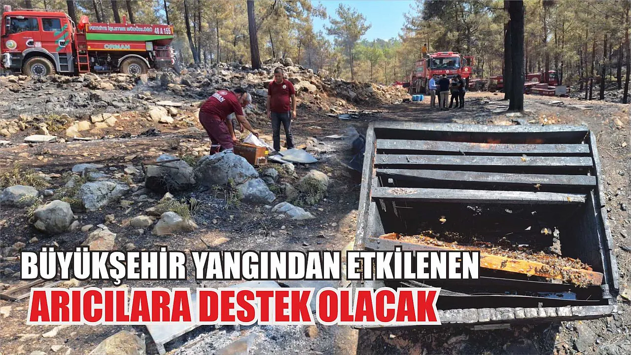 Muğla Büyükşehir Belediyesi Menteşe İlçesi Sarnıç-Çatakbağyaka Mahalleleri arasında başlayarak geniş bir alana yayılan yangından etkilenen arıcılara destek olmak için çalışma başlattı.