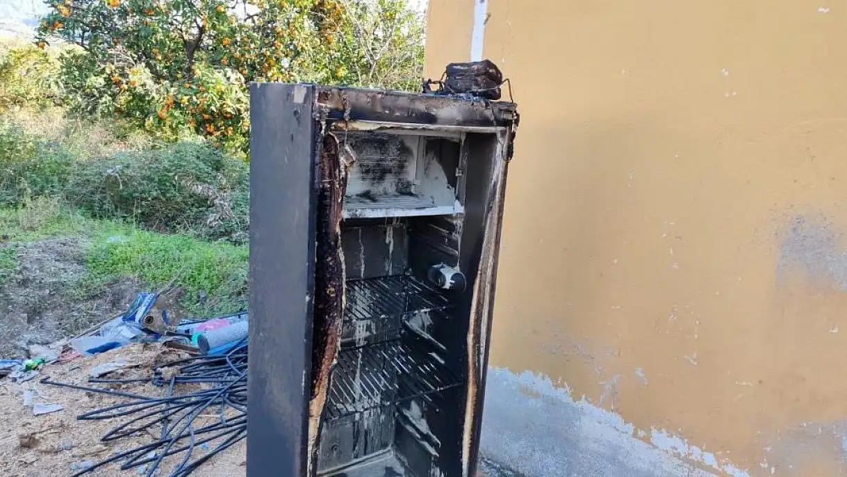Hatay'da buzdolabının kablosundan çıkan yangında ev yanarak kullanılmaz hale gelirken, anne ve oğlu pencereden atlayarak canını kurtardı.